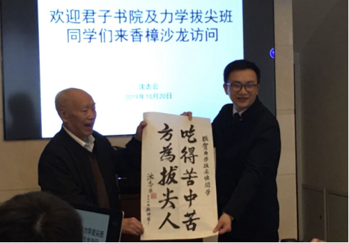 10月20日下午,力学拔尖班名誉班主任聘任仪式暨沈志云院士报告会在峨眉校区沈志云院士家中举行,中国科学院院士、中国工程院院士沈志云受聘成为澳门六合彩开奖记录-澳门六合彩开彩结果