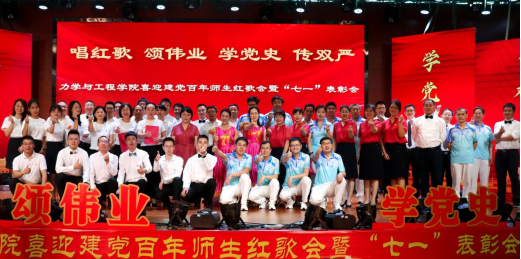 喜迎建党百年师生红歌会暨“七一”表彰大会在犀浦校区二食堂三楼大学生活动中心举办。学院领导、各师生党支部党员、学院艺术团、各年级学生共400余人参加了本次晚会。