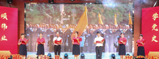 师生们演出结束后,学院党委书记栗民宣读了学院“七一”表彰名单,表彰学院获评“优秀共产党员”“优秀党务工作者”的师生,号召师生们在新时代勇担新使命,再接再厉,取得新的更大的成绩。