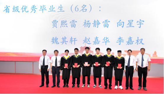 随后,学院党委书记栗民宣读了获得学士学位同学名单,并祝福毕业生们接续奋斗、前程似锦。接下来,学院教授代表们分别为省级、校级优秀毕业生代表颁发证书。