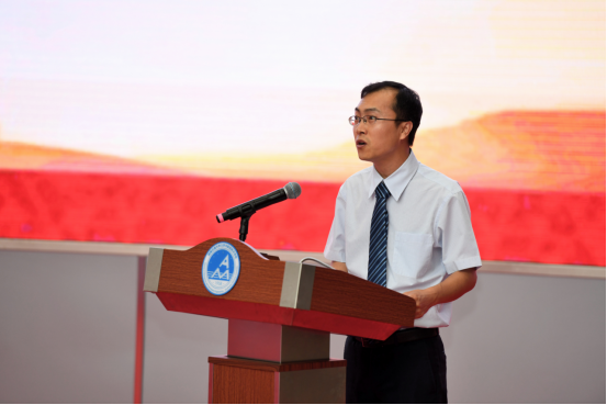 工力2018-04班班导师袁江宏做教师代表发言,他以自己的导师鲍亦兴先生对自己的教诲嘱咐同学们脚踏实地、不负韶华,勇敢的去创造属于自己的辉煌。