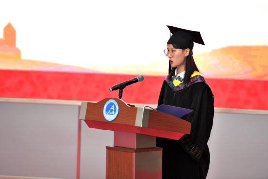 飞行2018-01唐淇作为学生代表发言,深情回顾四年来的生活,对学院的关心和培育表示感谢,并祝福学院越来越好,桃李满天下。