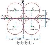 3七裂纹分布示意图(a);裂纹1周围的应力强度因子(b)