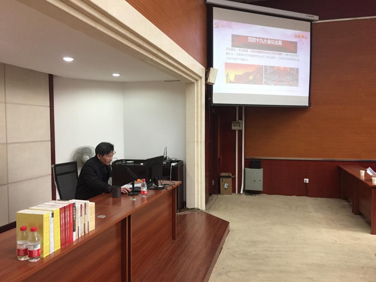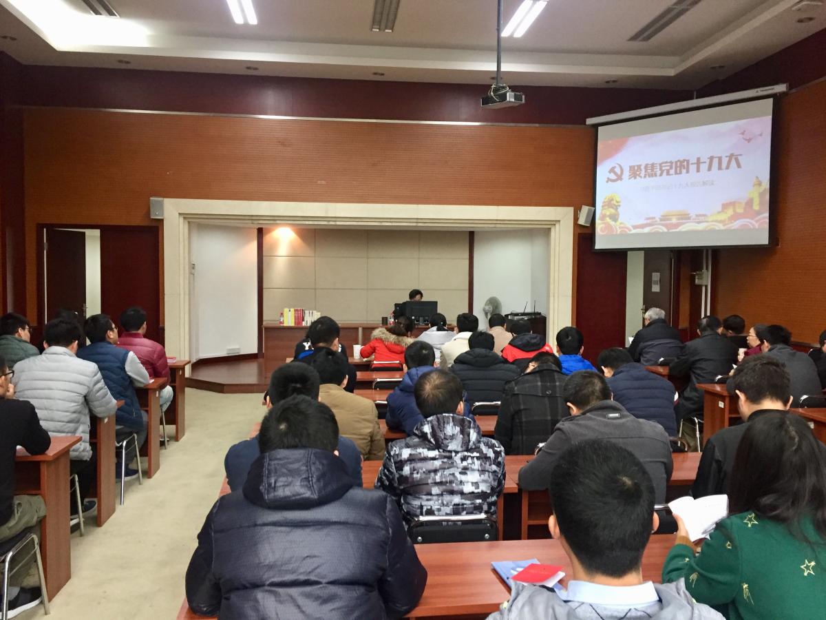 为了进一步学习宣传贯彻党的十九大精神,深入推进“两学一做”学习教育常态化制度化11月23下午14:30力学与工程学院党委金建明书记为研究生党员和机关及退休教工党支部讲授专题党课,题目为“深入学习党的十九大精神