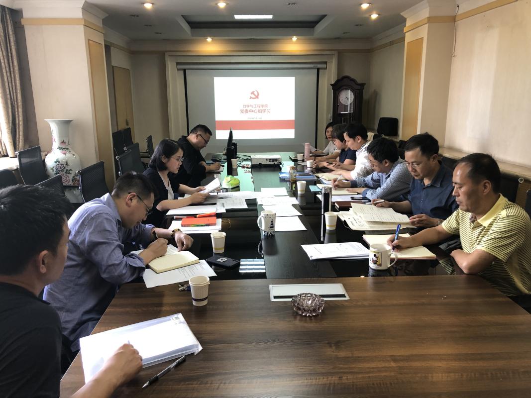 2019年第3次党委中心组会议在九里校区1号综合楼222会议室召开。会议由学院党委书记栗民主持并主讲,学院全体领导干部、党委委员、教职工党支部书记、系主任和综合办主任、人事科研秘书、党务秘书等参加学习。