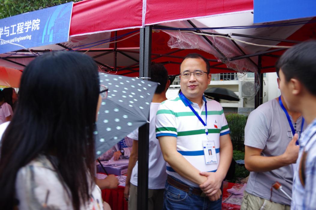 校党委常委沈火明教授热心地为新生们介绍专业情况,解答家长和学生的疑惑。