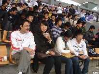 在运动员们比赛的同时,学院其他同学和老师们都在看台上为运动员们加油助威;赛场外青协的同学也坚守着志愿者服务中心为我院运动员和观众提供坚实的后勤。
