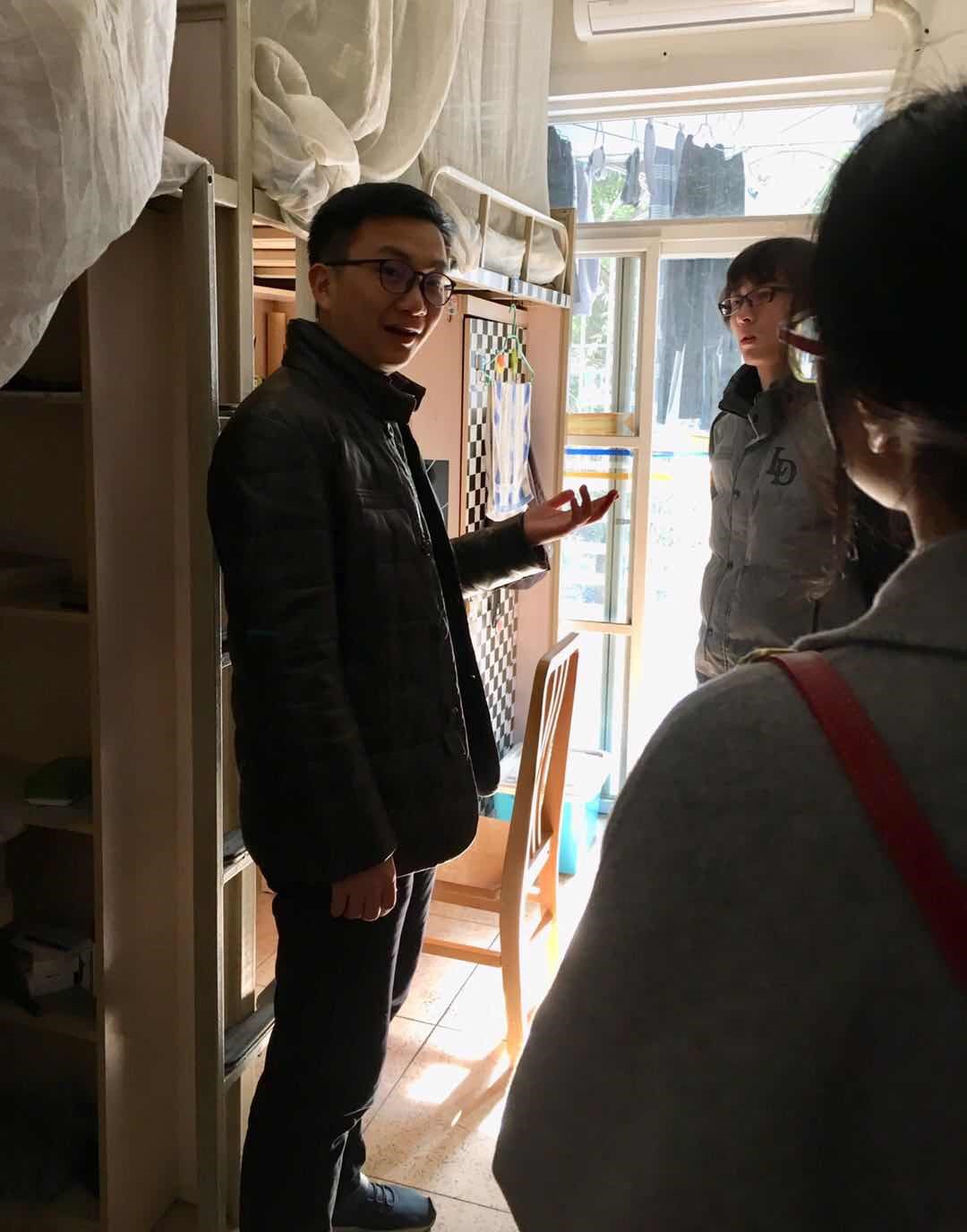 在宿舍里,孔老师详细了解了同学们学习、生活、假期安排、离校时间等方方面面的情况,特别与大四同学就升学、毕业设计等情况进行了交流,叮嘱同学务必要增强安全意识,确保度过一个平安、愉快的假期,并提前给同学们送上了新春祝福!