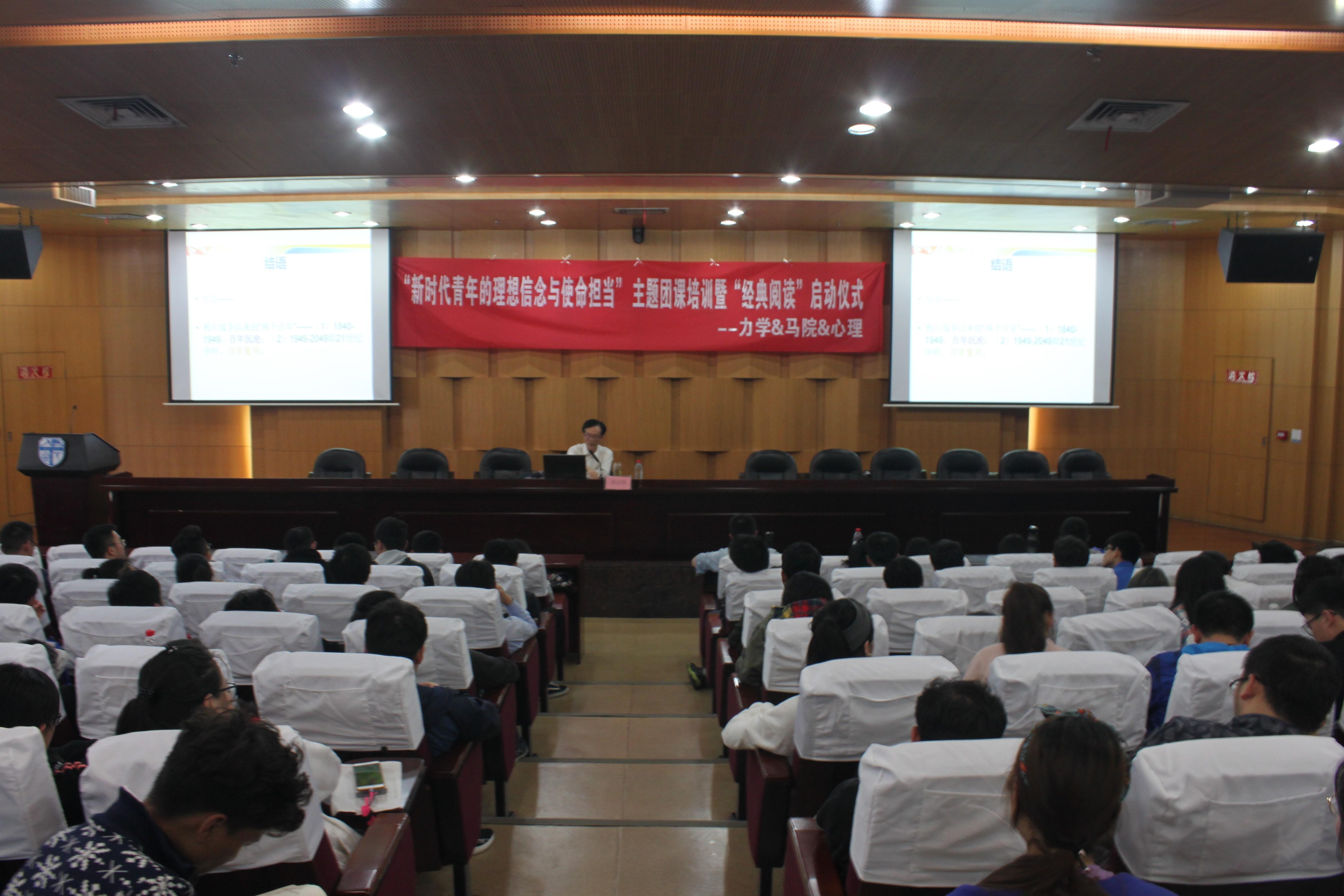 团委、马克思主义学院团委和心理研究与咨询中心团委联合举办了“新时代青年的理想信念与使命担当”团课培训暨“经典阅读”启动仪式。