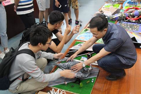 6月9日上午9时,大赛初赛在犀浦校区创新创业教育中心进行,各组作品被统一摆放于此。罗会亮老师和杨洋老师对每一组对作品进行了仔细的检查,对每组的完成情况进行了点评,并就制作工艺、创意来源等相关内容向制作同学询问。随后,各组队员派代表进行抓阄,确定了次日决赛答辩的顺序。