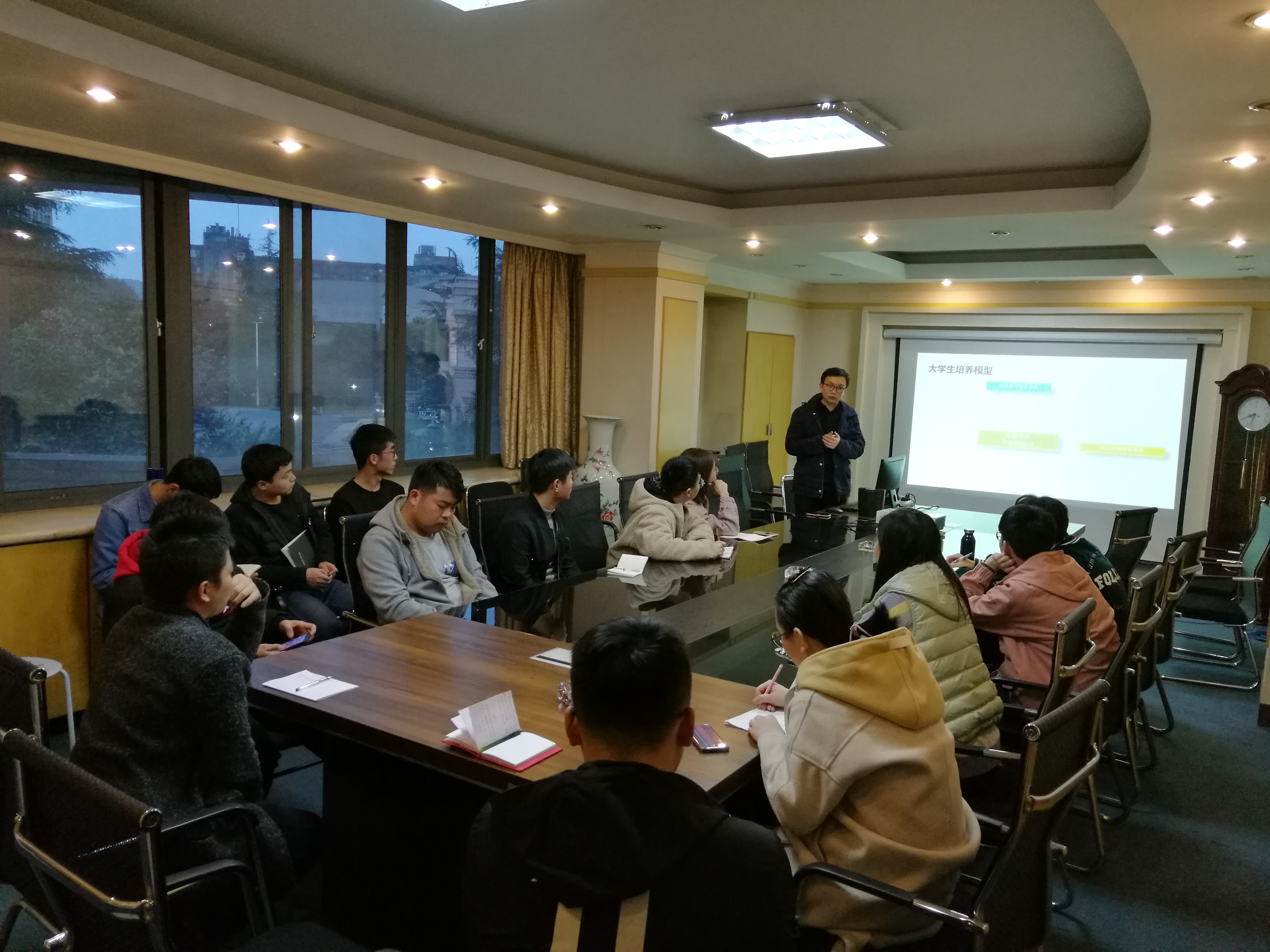 研究生会自身队伍建设,提高研会成员的工作能力,2019年3月21日晚,在九里校区1号综合楼222会议室,力学研会特别邀请学院党委副书记孔祥彬老师和研究生辅导员张英蓉老师与研会成员讲座交流。
