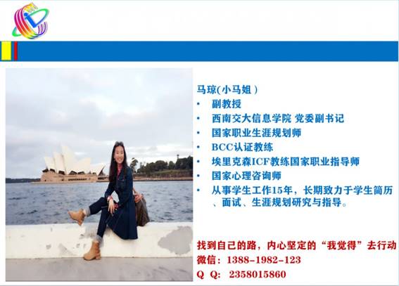 马老师的分享让我们明白了,职业生涯规划是动词而不是名词,而合适的选择、正确的聚焦和有计划的行动会帮助我们在以后的职业生涯中越走越远。最后引用马老师的一句话“我们只需要找到自己的路,内心坚定的去行动!