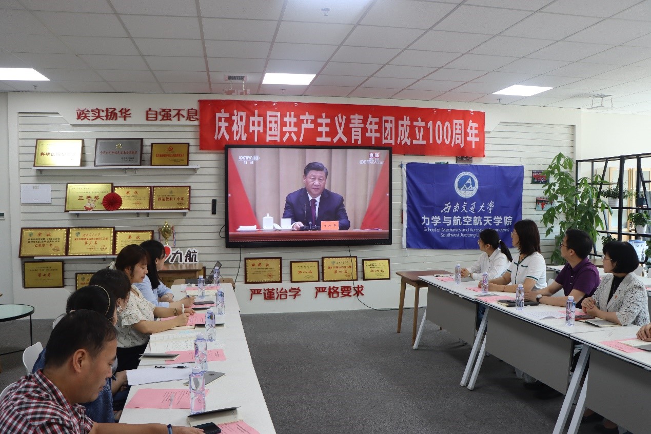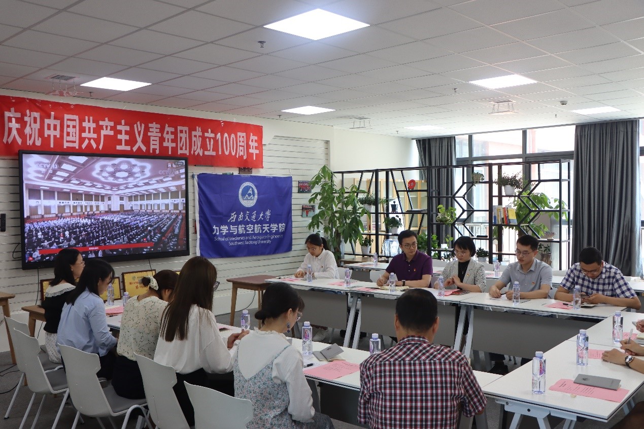 师生代表在X30278集中收看“庆祝中国共产主义青年团成立100周年大会”,在大会结束后举行了学院青年师生代表座谈会。学院党委书记栗民、党委副书记孔祥彬、学院机关党支部、团干部、五四表彰获奖个人和集体代表等一同观看直播。