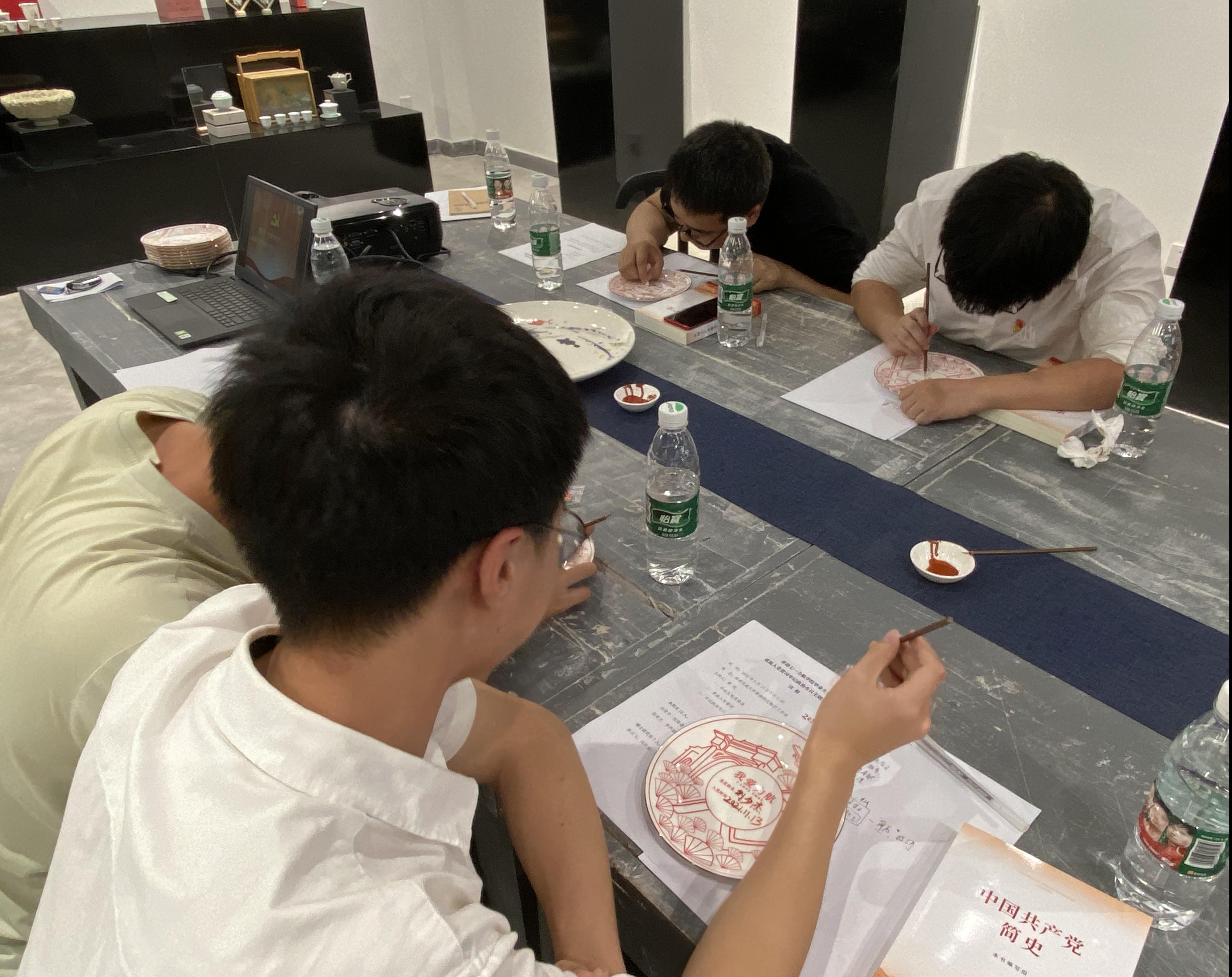 现场好多同学将自己的姓名在草稿纸上写满了一页纸,还是觉得不满意,又在瓷盘上更改了好几遍才停笔。党员姓名和入党日期简单的几个字,党员们却用了近30分钟时间才完成书写。