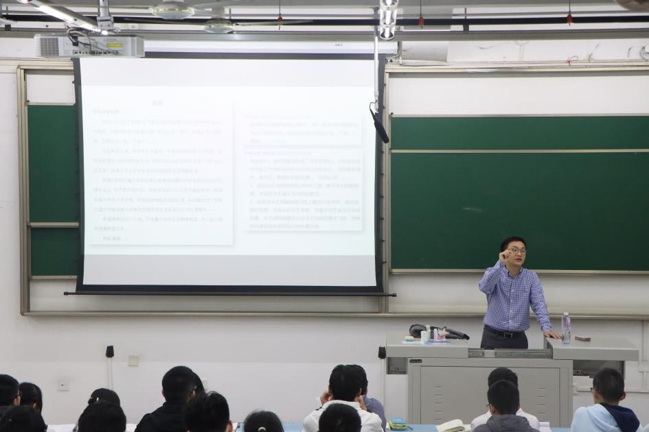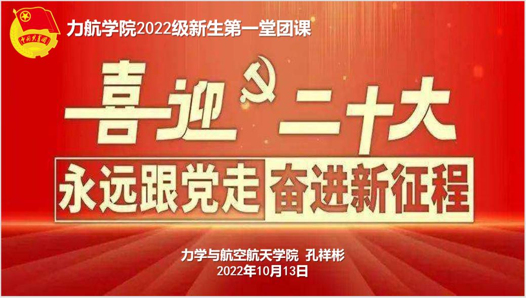 在X2321开展了2022级本科生第一堂团课,学校青年讲师团成员、学院党委副书记孔祥彬以“喜迎二十大,永远跟党走,奋进新征程”为主题进行授课。