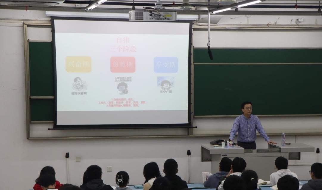 课上,孔祥彬老师还提出,大学生要明大德、守公德、严私德,做好每一件小事,积极参与集体活动,提升团队协作等能力,从而将来更好地适应职场。他对大家能够完成每天的早自习学习提出表扬,同时也提醒大家“成功贵在坚持”。对于困难之事和容易之事,大学生往往会选择完成容易的事,但进步是在做困难的事情中收获的,收到同学们热烈的反响。