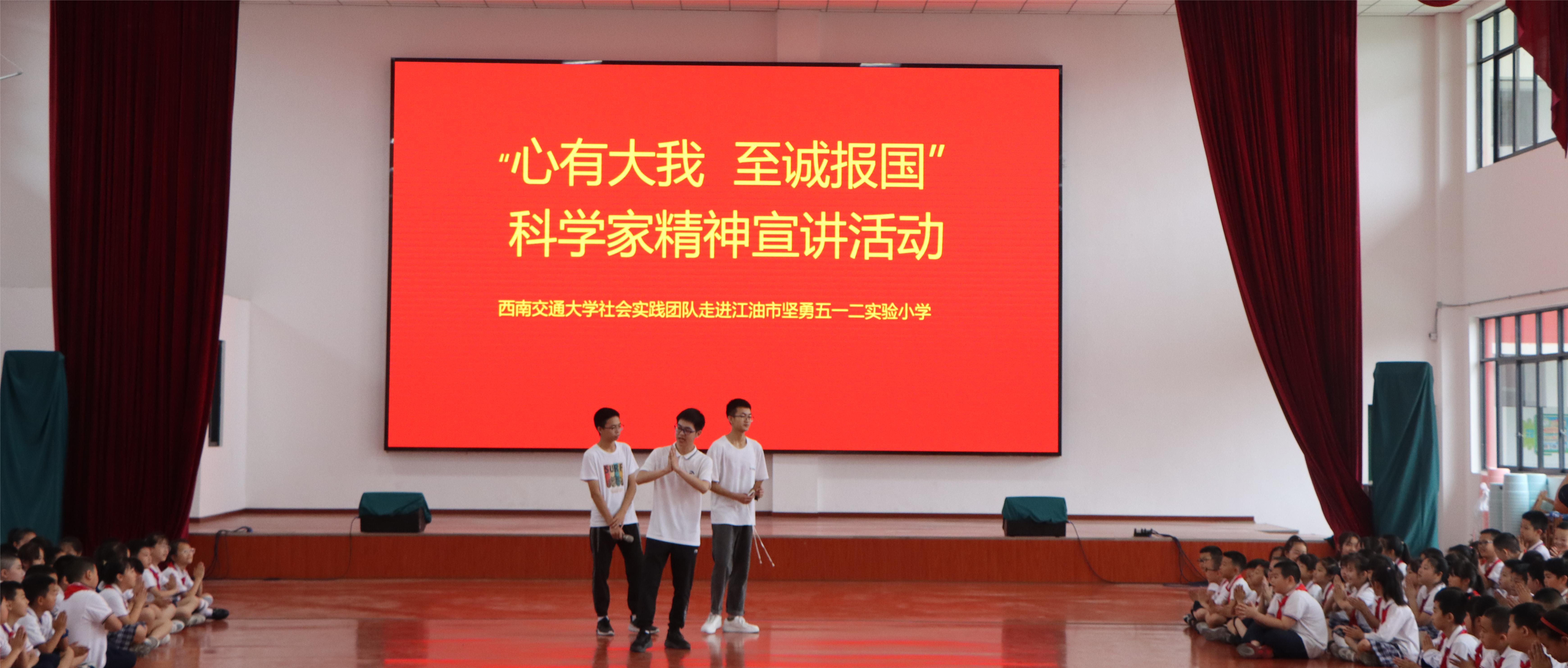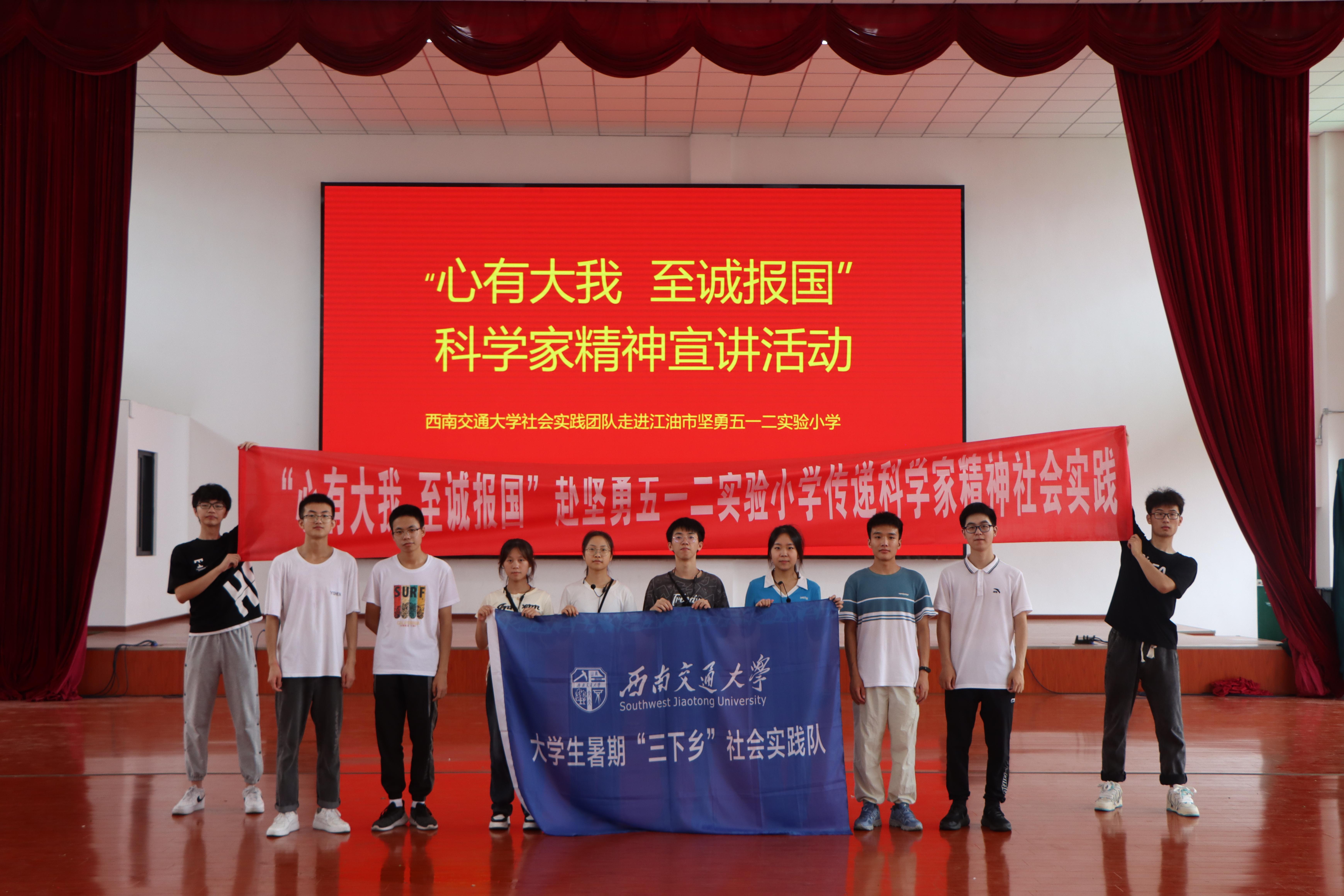 组建“三下乡”社会实践队(简称“实践队”),来自工力(拔尖班)2020-01班、工力2022-01班、工力2022-03班和飞行2022-02班的12名同学在辅导员安晟斐的带领下,于7月2日至7月4日赴绵阳江油坚勇五一二实验小学(简称“坚勇实小”),开展以“心有大我 至诚报国”弘扬科学家精神为主题的社会实践活动。活动由教唱科学家歌曲、宣讲科学家精神和开展科学小实验三部分构成。