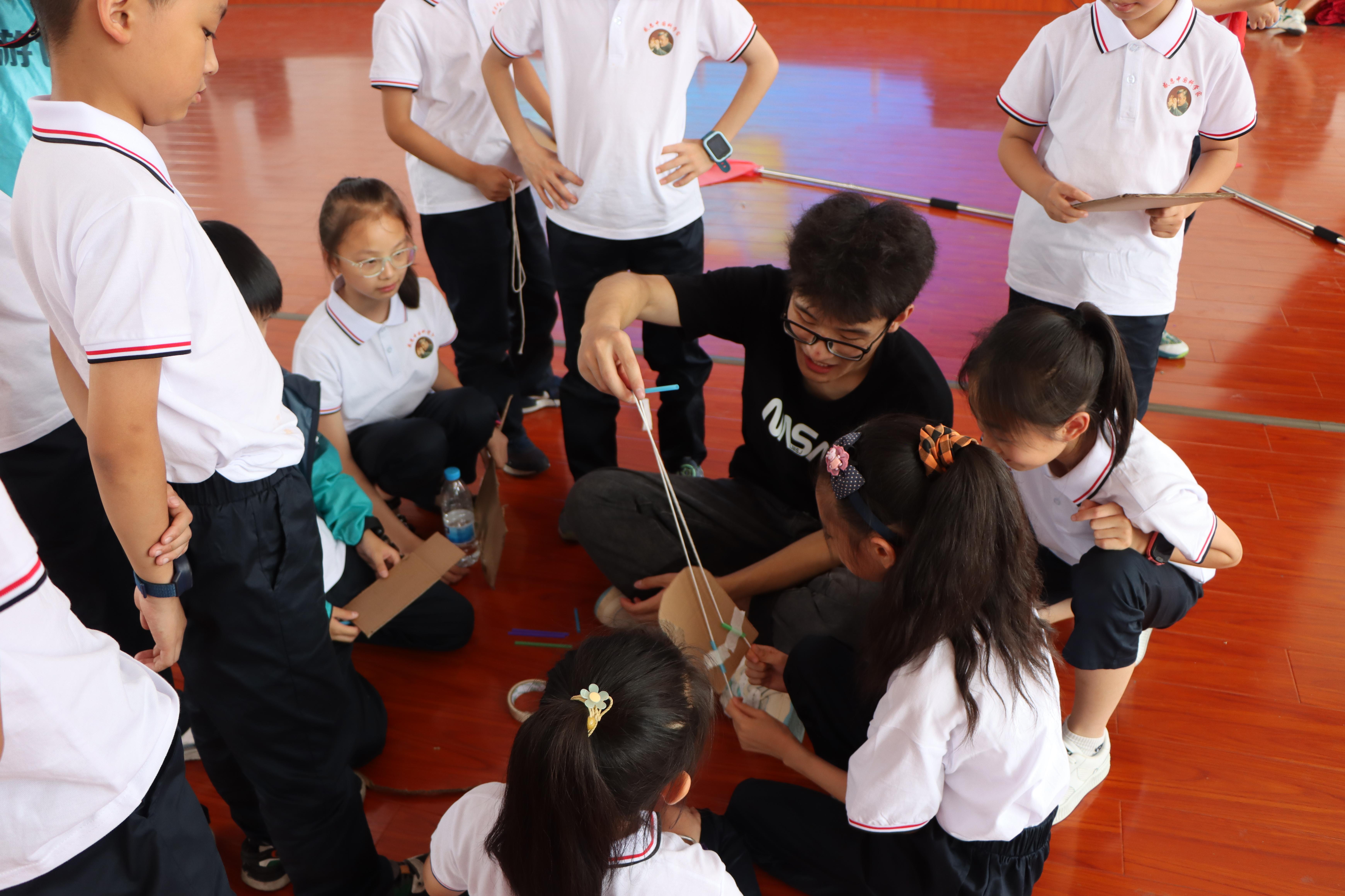 最后,以“水火箭”和“纸板爬山”为代表的科学小实验将整个活动推向了高潮。孩子们自己动手制作、测试、改进,体验了科学探究的过程,当看到自己小组的作品在实践队队员们的指导下成功发射时,尖叫声、欢笑声不绝于耳。孩子们雀跃的身影和欢笑的脸庞淋漓尽致地体现了他们对科学的热爱。