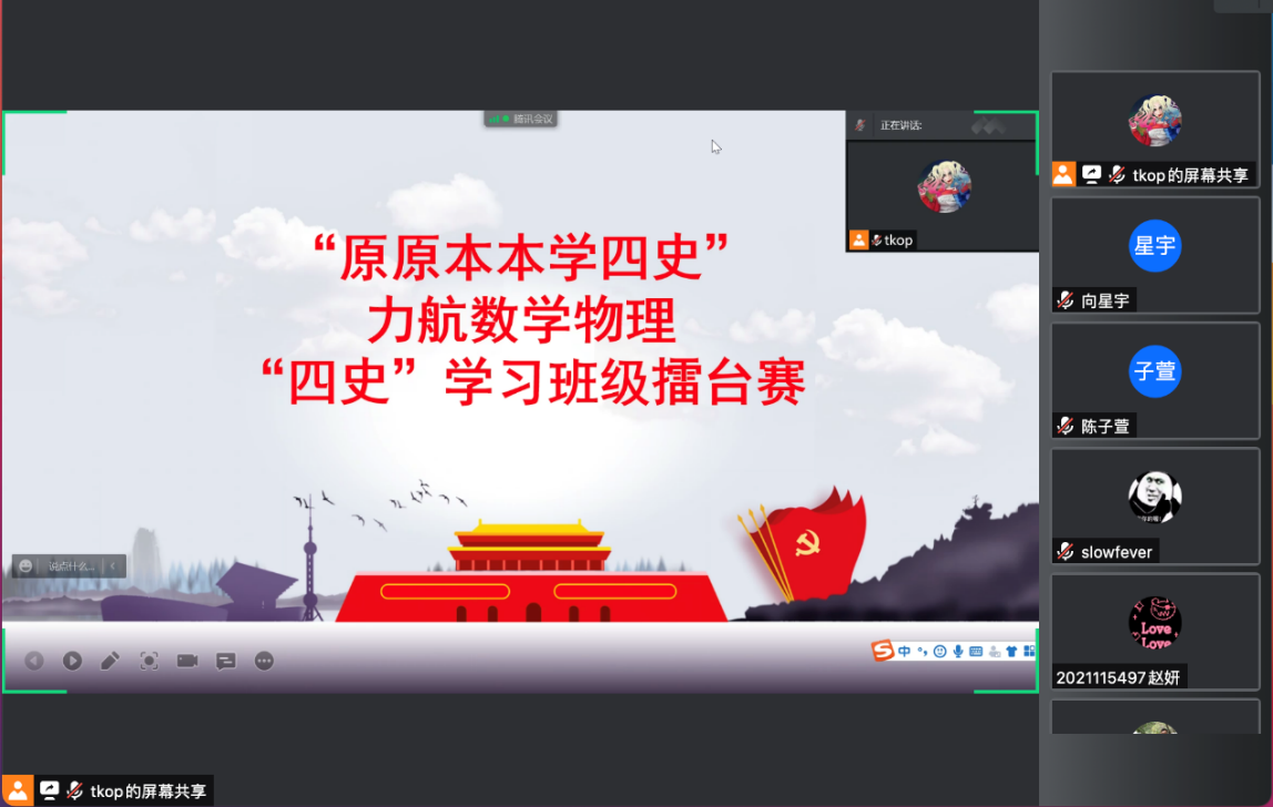 本次活动暨第一场擂台赛,主题为《中国共产党简史》学习心得,三个学院分别派出了力学(拔尖)2021-01班、大数据2021-01班和物理(拔尖)2021-01班进行PK,领学人分别为澳门六合彩开奖记录
