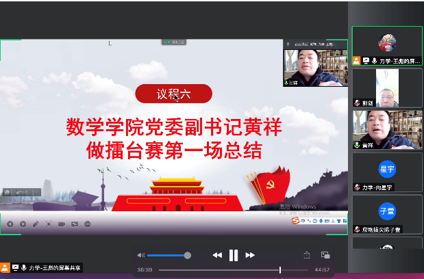 本科生党支部书记王彪老师主持。因为疫情原因,活动通过腾讯线上会议举行。