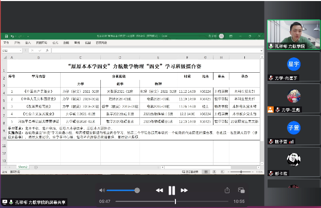 11月12日下午,由力航、数学、物理学院联合举办的“原原本本学四史” 力航数学物理“四史”学习班级擂台赛第一场顺利举行。此次擂台赛是继三个学院联合举办“原原本本学党史”辅导员擂台赛、学生党支部擂台赛之后,新的接力合作之举。