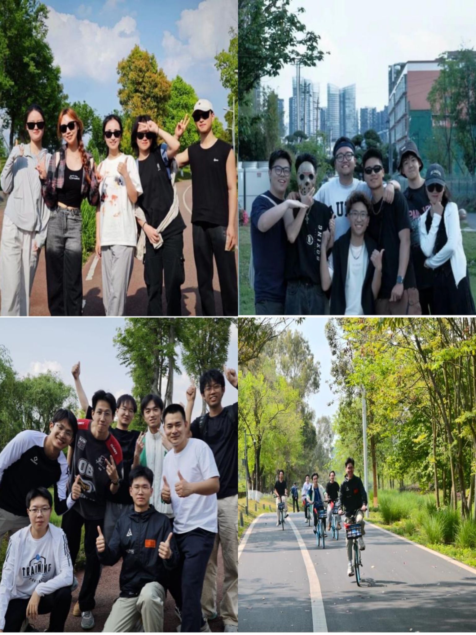 骑行活动于青龙湖公园正门启程,沿着绿意盎然的绿道前行,途经玉石湿地公园和白鹭湾湿地公园两大风景点,最终抵达中和湿地公园,全程约20公里。活动中,各参赛小组竞相角逐,展现出了卓越的骑行技巧与团队精神。同学们在骑行中相互激励、和谐互助,不仅享受到了低碳骑行的乐趣,放松身心,更在运动中感受到了团队合作的力量。