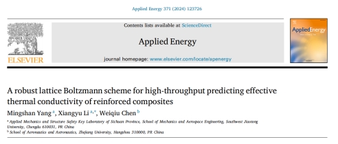近日,西南交通大学李翔宇教授课题组在复合材料等效热导率预测的数值方法研究方面取得了重要进展。相关成果以“A robust lattice Boltzmann scheme for high-throughput predicting effective thermal conductivity of reinforced composites”为题发表在国际能源领域顶级期刊《Applied Energy》(中科院一区TOP,IF:11.2)。博士研究生杨名山为第一作者,李翔宇教授为通讯作者,浙江大学陈伟球教授为合作作者。
