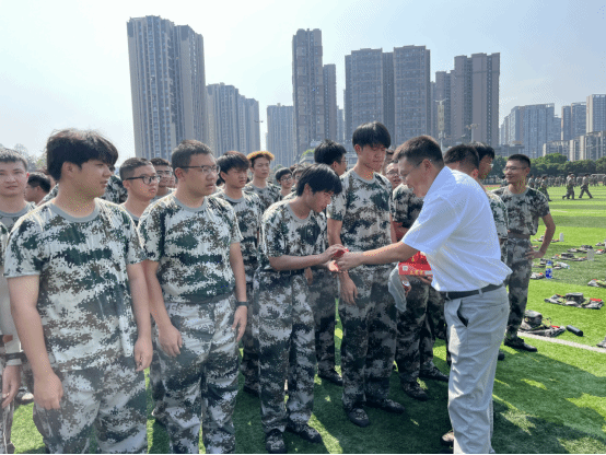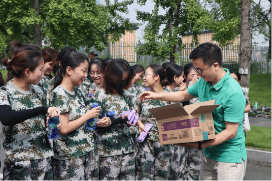 党委书记栗民、院长李翔宇、党委副书记孔祥彬、团委书记张容华及2022级本科生辅导员古定翱一行前往学院2022级大三学生的军训场地,亲切慰问正在刻苦训练的同学们。学院充分考虑到军训期间学生们的身体需求,精心为每位同学准备了一瓶运动饮料和一包饼干,帮助他们在严格的训练中及时补充体力,展现了学院对学生的细致关怀。