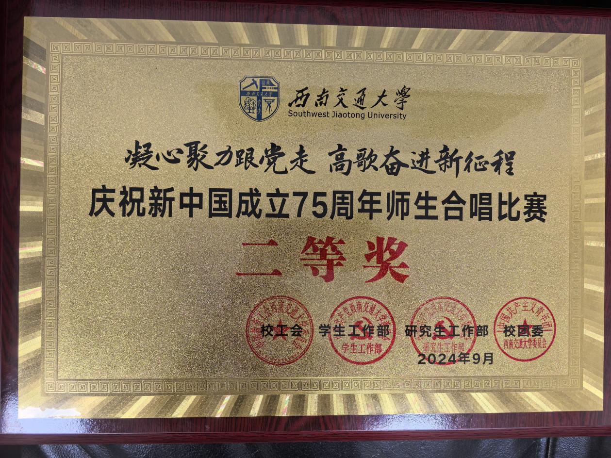 9月26日下午,在学校隆重举办的庆祝新中国成立75周年“凝心聚力跟党走、高歌奋进新征程”师生合唱比赛中,在24支参赛队伍的角逐中,学院喜获二等奖。