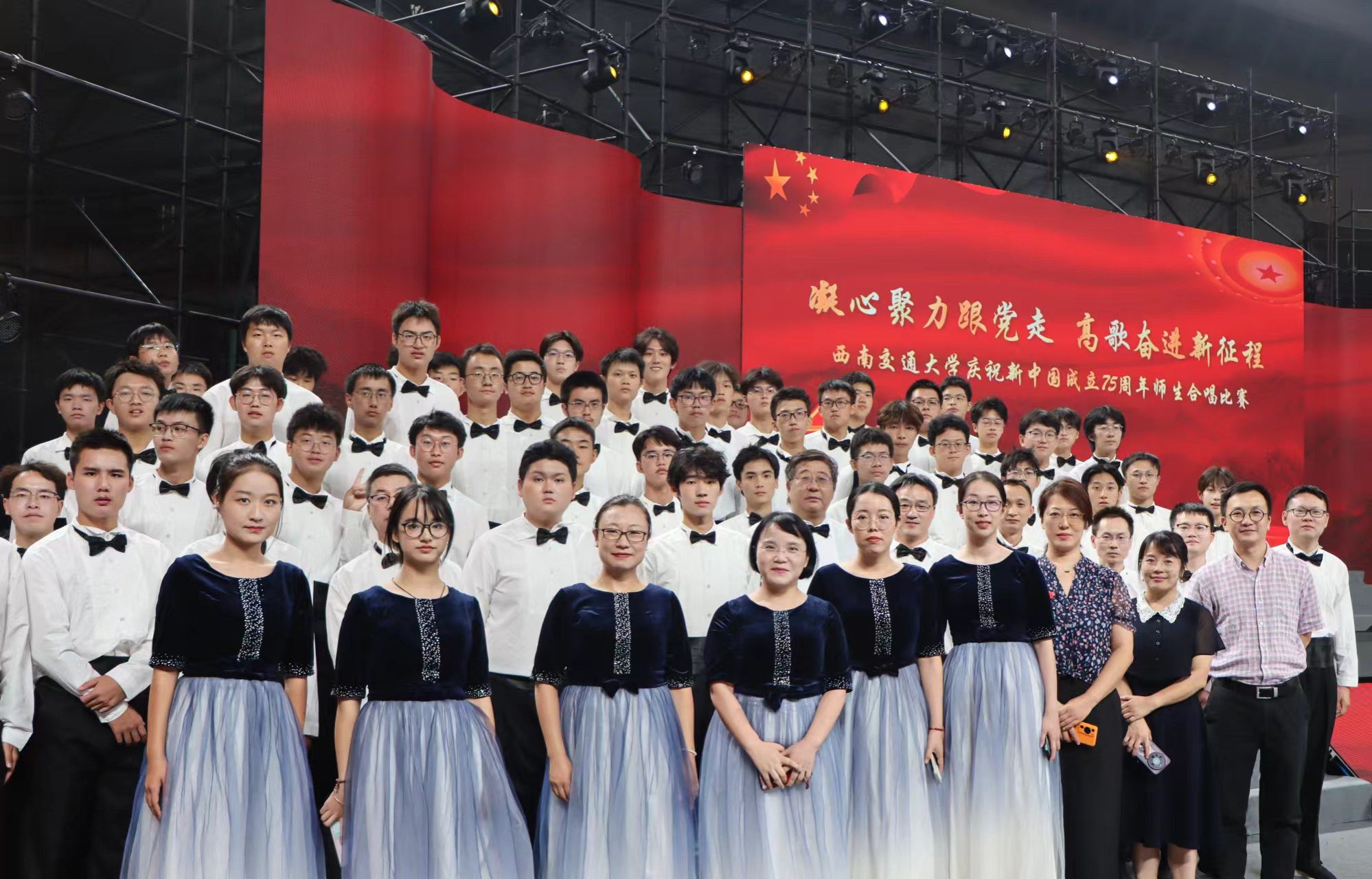 在比赛过程中,两院师生凭借娴熟响亮的歌声,强烈的爱国信念,以及精彩的节目编排,最终取得优异的成绩,为庆祝新中国成立75周年奉上了圆满的答卷。