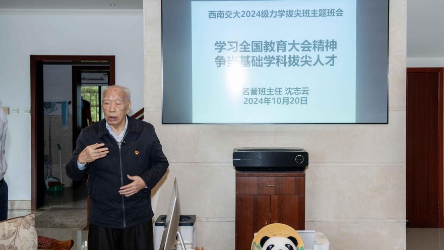 首先,沈院士以全国教育大会精神为主题,为2024级拔尖班同学带来一场主题班会。沈院士寄语同学们“志存高远,脚踏实地,刻苦耐劳,团队为先”,告诫同学要将自我发展与祖国需要将结合,努力成为祖国需要的基础学科拔尖人才。