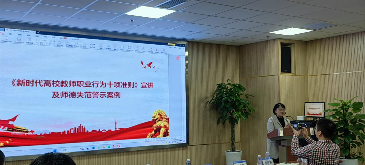 会议第二阶段为师德师风建设及警示教育。学院院长李翔宇宣讲了《学术出版规范——期刊学术不端行为界定》,让教职工明晰了学术道德的边界,对于学院的学术出版行为进行了规范;学院党委书记栗民宣讲了《<新时代高校教师职业行为十项准则>及师德失范警示案例》,通过讲解准则和案例,加强教师对自身职业行为规范的重视,提升师德素养强化纪律意识。