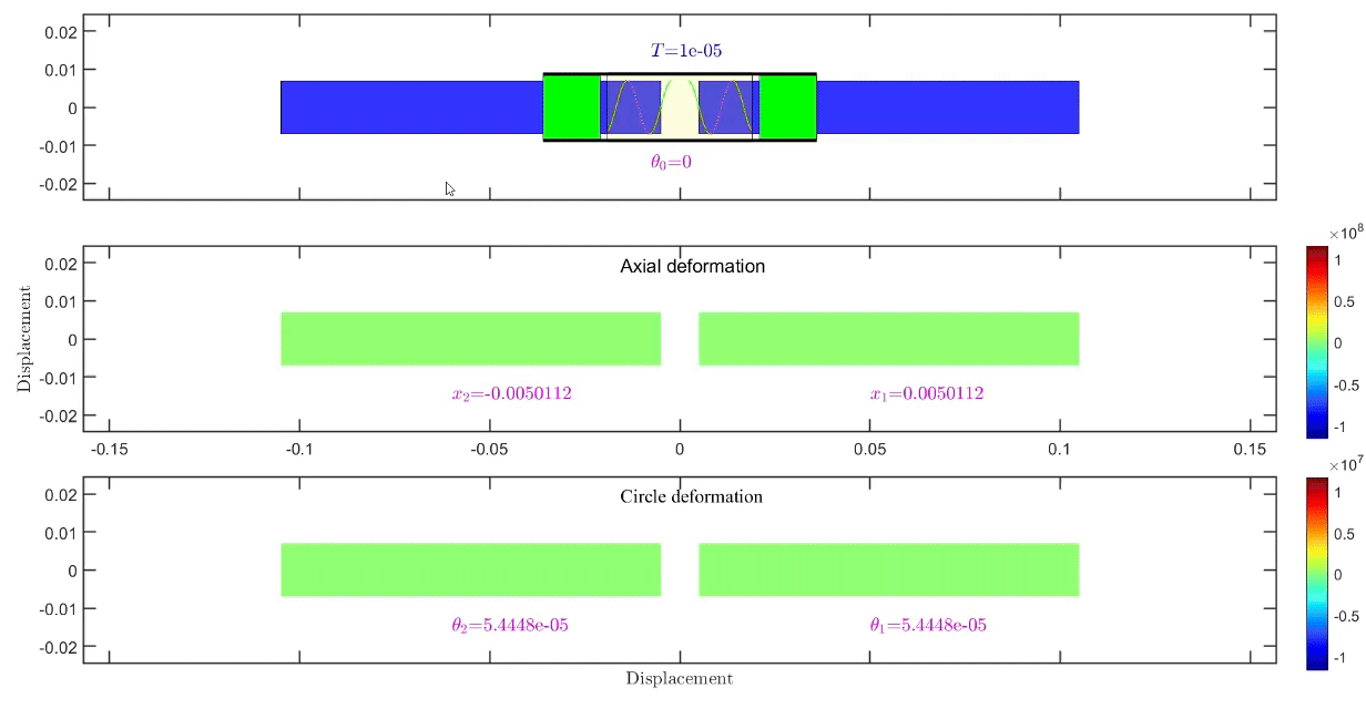 该研究的主要创新在于发展了高效的螺纹接触动力学计算模型。将螺纹视为固接于拉伸-扭转耦合螺杆上的变截面悬臂梁,并将螺纹间的面接触简化为几何中点的线接触。基于螺旋线几何特征,提出了螺纹接触变形的几何协调关系,并结合修正悬臂梁变形模型,将螺纹接触力解析地表示为螺杆拉伸扭转的函数。这一方法避免了有限元分析中复杂几何接触所需的网格划分和接触搜索,显著提高了仿真效率。对于图4所示的刚柔耦合动力学过程,该模型在78秒内即可完成左右整个对称结构的仿真,而有限元仅计算右侧一半就需要2720秒,充分体现了所发展模型的高效性。