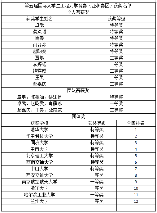 精心组织了本次竞赛。依据2023年四川省孙训方大学生力学竞赛成绩和《理论力学》课程成绩,选拔了12名学生报名参赛,并邀请《理论力学》教学团队的刘菲、鲁丽、乐源三位教授进行了赛前强化培训和英文答题培训,全程指导竞赛。本次竞赛获此佳绩,充分展现了我校基础力学教学的深厚底蕴和“双严”传统下学生的扎实力学功底。通过组织参加本次竞赛,与其他高校参赛选手的同台竞技,可以相互学习、相互借鉴、提升我校基础力学的教学质量,进一步发挥力学学科对我校其他学科的支撑作用。
