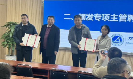 随后,学院举行了专项主管聘书颁发仪式。栗民书记和李翔宇院长分别为新聘任的教学主管和科研主管颁发了聘书,激励他们在新的岗位上充分发挥专业优势,为学院发展贡献力量。