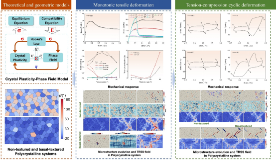 近日,我院博士生胡佳晨在塑性力学领域顶刊《International Journal of Plasticity》(IF:9.4,中科院一区,TOP期刊)上发表了题为“Deformation mechanism of non-textured and basal-textured polycrystalline Mg alloys: A coupled crystal plasticity-twinning phase field simulation”的研究成果。我校康国政教授和四川大学徐波副研究员为共同通讯作者,合作者包括我院于超教授和博士生熊君媛。