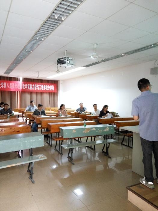 本次初赛在赛前进行了精心组织,在上个学期末就开始进行了宣传,赛前通过海报、微信群再次进行了宣传。初赛过程严格按照制定的标准流程执行,参赛教师通过抽签决定出场顺序,抽取八个授课环节其中的一个作为演讲对象,每位教师演讲时间限定为20分钟,逾时将被终止。参赛教师授课完成后,评审专家对每位参赛教师在讲课比赛中的不足之处均进行了点评,包括教学设计、详略取舍、PPT制作和语言表述等方面。参赛教师通过撰写教学反思表,总结本次讲课比赛的得失。最终,评委汇总每位参赛老师的评分表和成绩,提交给竞赛组委会秘书阚前华副教授保存。