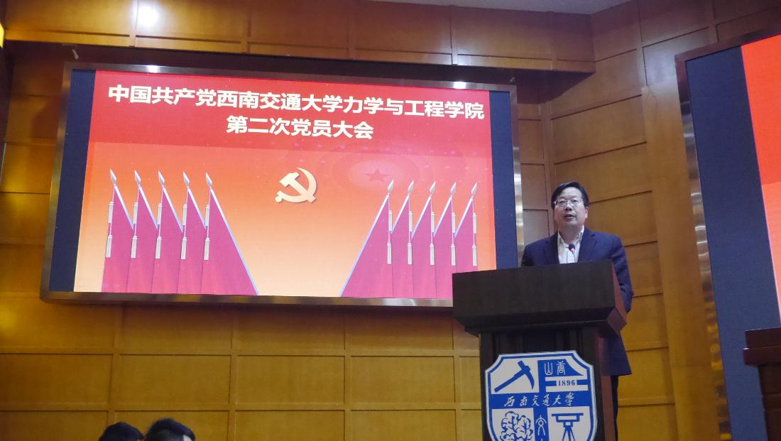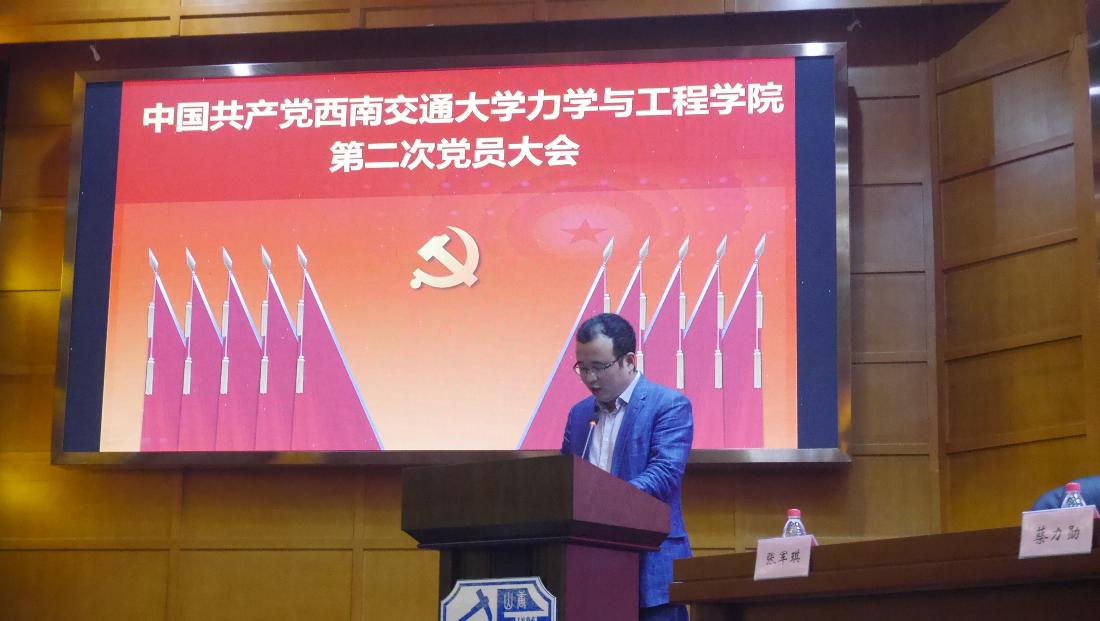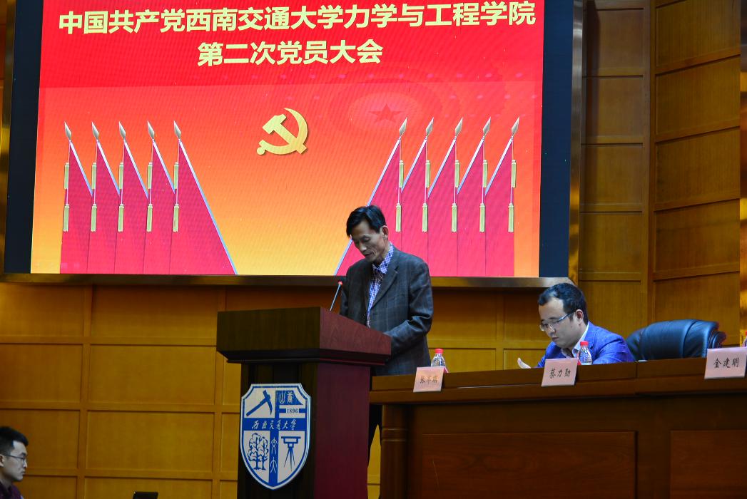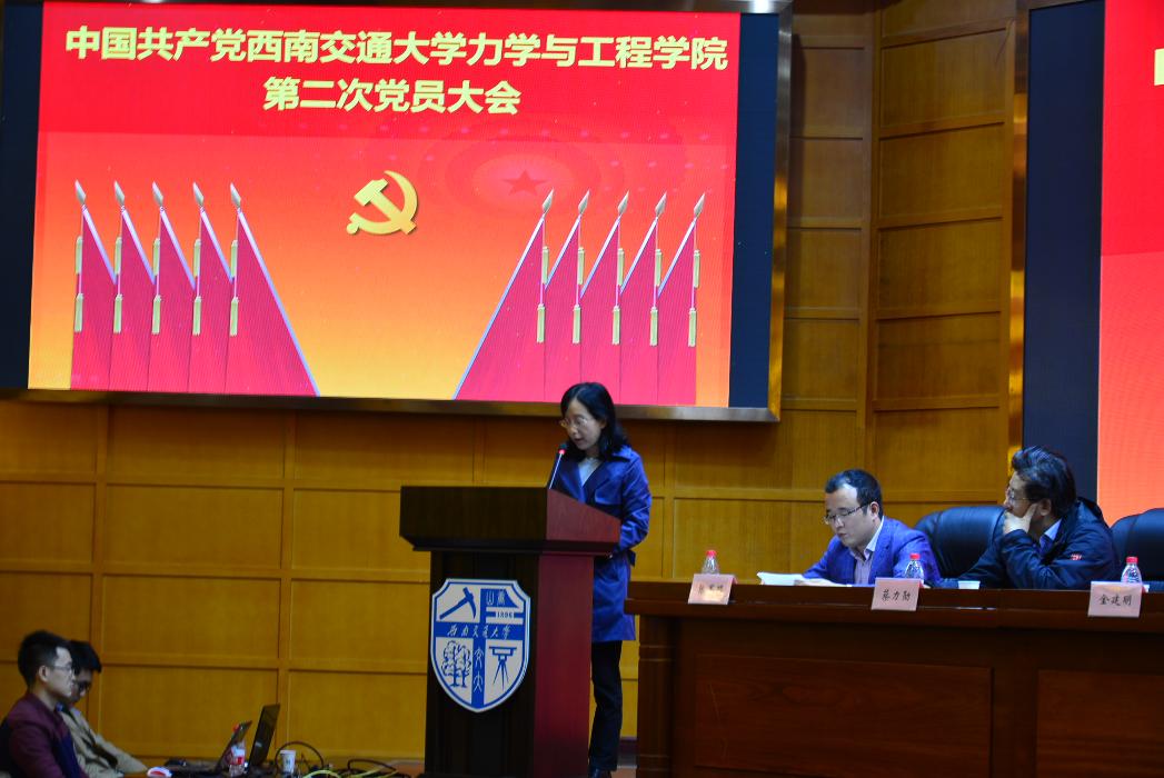 党委书记金建明代表学院党委做工作报告,主题为《不忘初心,砥砺奋进,力争以优异成绩助力学院科学发展》。他指出,2011年至今5年来学院各方面工作迈上了新台阶,主要包括:党建和思想政治教育、高端人才引进、学科建设、科学研究、教育教学、人才培养、工会建设以及学生工作等各方面取得的新成绩。金建明代表学院党委,向为学院建设与发展付出辛勤劳动的老党员、老同志,向为学院建设与发展付出艰苦劳动的共产党员们,致以崇高的敬意!学院未来四年建设与发展的目标是:将学院建设成为国际知名、国内一流且在多个领域居领先地位的力学基础理论和工程应用技术研发基地和人才培养基地。在这一目标下,学院的工作重点是:推进“人才强院”战略,为改革发展提供人才支撑;进一步夯实学科发展基础,大力提升学术竞争力;创新人才培养体系,提高人才培养质量。金建明强调,学院各党支部和全体党员要继承和发扬一代又一代力学人“严谨治学、严格要求”的优良传统,不忘初心,砥砺奋进,以优异成绩助力学院科学发展!