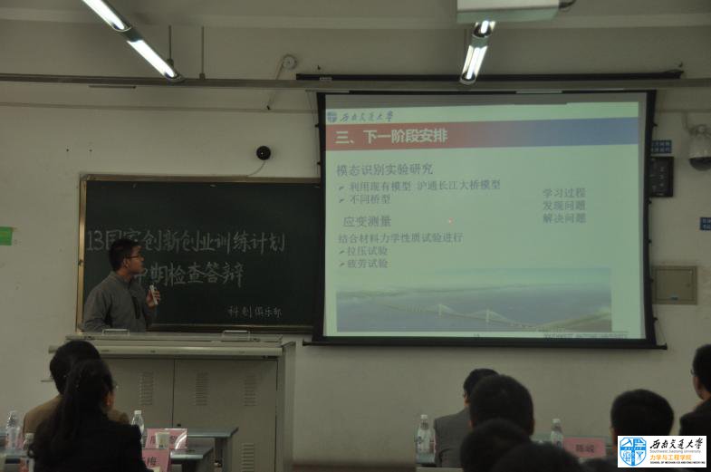 2013年10月31日下午2:00,我校2013年“国家创新创业训练计划”项目中期检查答辩会在一号教学楼多媒体教室顺利举行。本次答辩会由教务处主办,大学生科创俱乐部承办,来自各学院的79个项目参加了答辩,赵人达、廖海黎、朱德贵、赵舵、鲁雄、李毅等56位项目指导教师组成的评委组出席了本次答辩会。