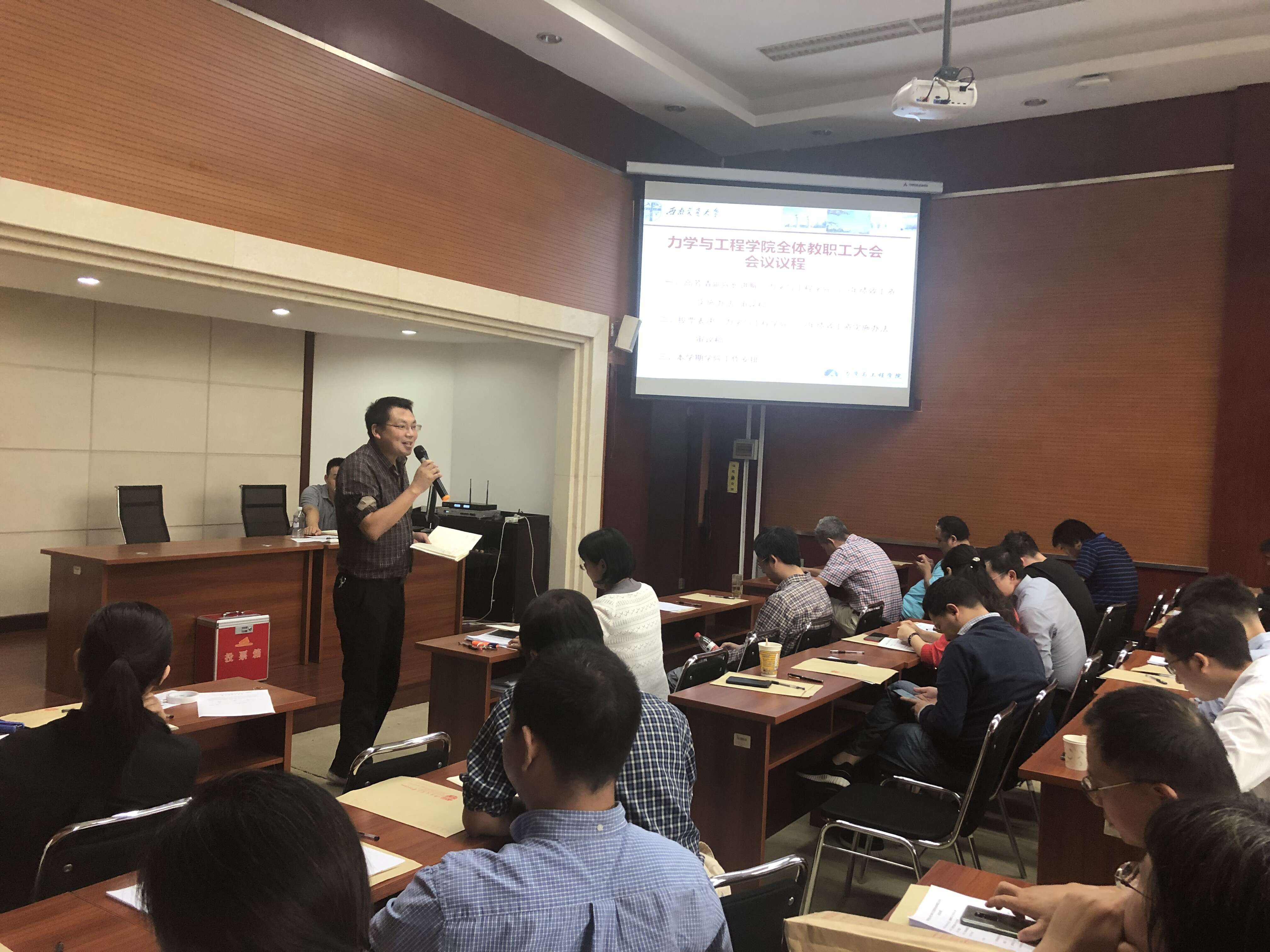 在接下来的会议中,高芳清副院长对近期学院教学团队工作室使用情况进行了通报和要求。阚前华副院长介绍了“力学拔尖班”报名情况和研究生招生、教学的相关工作安排。李翔宇副院长通报了近期相关学术会议、自然科学基金、“创源大讲堂”等工作的进展情况。工会主席范晨光通报了近期学院歌咏比赛、植树活动等工作安排。