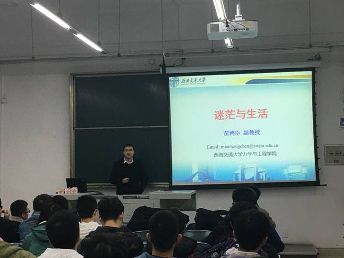 苗鸿臣副教授主讲,苗老师为力学学子讲述了以“迷茫与生活”为主题的励志讲座,同时分享了如何学习材料力学的心得,解答大家的学习疑惑。学工组胡持、张容华老师,努力班全体同学以及各年级部分同学参加了本次活动。