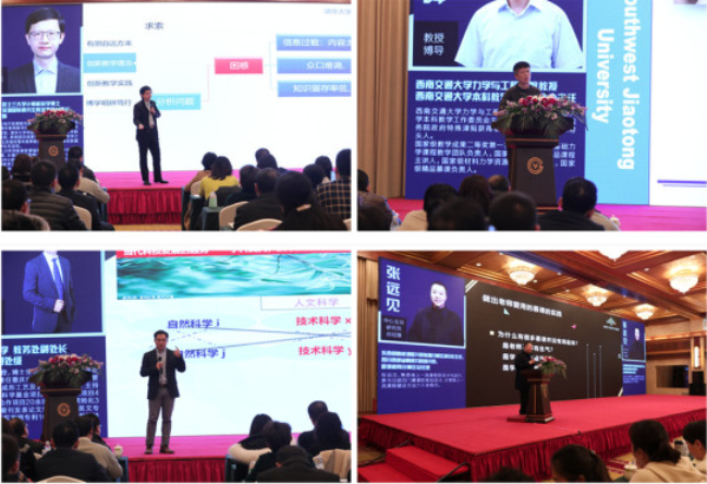王红以“升阶 拓展 创新——对建设一流课程的思考”为题,以建设一流课程的一些疑问和忧虑为引,通过《中国诗歌艺术》课程建设的三个阶段,讲述她个人参与课程建设的感受,并对四川省高校一流课程建设提出了建议。王付欣作题为“淘汰‘水课’·打造‘金课’——高校思政类课程混合式教学的探索与实践”的报告,结合自身所讲授的《思想道德修养与法律基础》这门课程,介绍了在高校思政类课程实施混合式教学的实践,并分享了打造有深度、有温度和有高度的高校思政类课程的丰富经验。居峰围绕“一流本科课程建设与应用的教学质量要求”的主题,介绍了教育部建设高校一流课程的背景和初心,提出要正确认识一流课程的认定标准,注重各类金课评审细节,真正实现分类建设、扶强扶特,建设具有高阶性、创新性和挑战度的金课。陈伟以题为“识变,应变,求变——以智慧之道,促“金课”建设”,从识变、应变、求变三个阶段,介绍了中国在建设慕课方面取得的成就,以及如何将优质慕课课程与线下课程进行深入融合,利用新兴技术手段,实现智慧教学。
