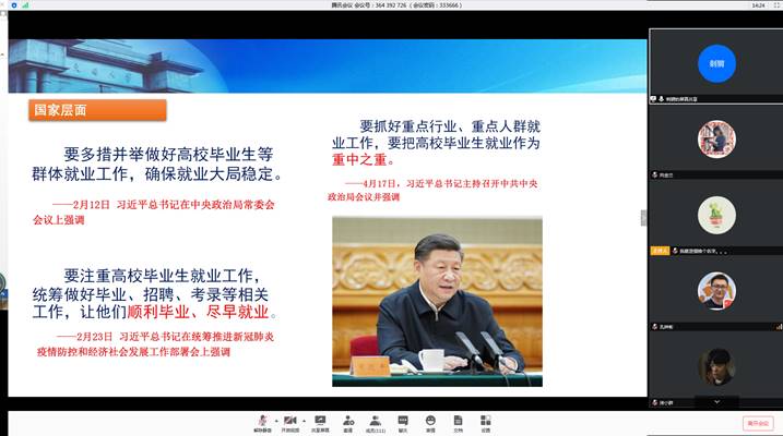 首先,招就处就业管理科科长陈曦轶老师用历年学校、学院就业数据向同学们说明了今年的就业形势,并就今年一些疫情下的就业激励政策向同学们进行了解读,希望同学们抓住机遇,找到自己满意的工作岗位。