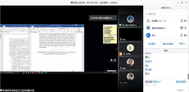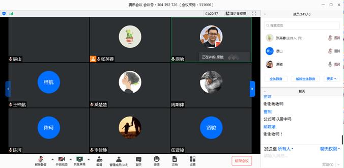 5月18日晚19:30,力学学院开展了2020届毕业生“建功立业新时代”云上动员会暨返校工作会。会议由学院团委副书记、研究生辅导员张英蓉老师主持,学校招就处就业管理科科长陈曦轶、学院副院长阚前华、学院党委副书记孔祥彬、学工组副组长杨婧、2016级本科生辅导员向金兰以及学院2020届的全体本、研学生参加了本次会议。