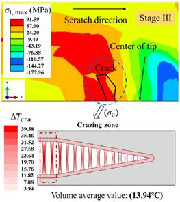 图4 PMMA刮擦过程裂纹尖端温升数值模拟[3]