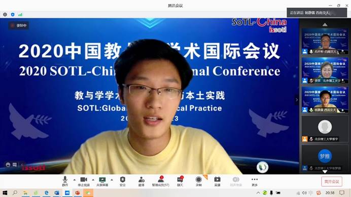 2020年8月21日至23日,由北京理工大学主办、国际教与学学术学会(ISSOTL)等协办的“2020中国教与学学术国际会议”(SoTL-China)在北京开幕。这是首次在中国举办的SoTL国际会议,安排了1个主会场、11场分论坛、9场研修坊及海报展示,来自中国、美国、加拿大等国的919位专家学者就国际视野下的教与学学术、中国高等教育中的教与学学术实践等议题展开学术交流,世界各地共7万余人次收看了大会直播。我院党委副书记孔祥彬、2018级本科生杨静雷参加了会议并进行了精彩的分享,受到主办方和与会同行一致好评。