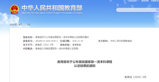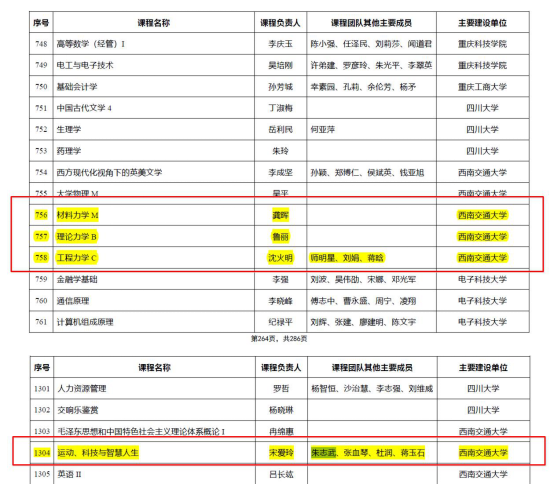 11月25日,教育部正式公布了首批国家级一流本科课程认定结果,我院沈火明教授负责的《工程力学》, 龚晖教授负责的《材料力学》和鲁丽副教授负责的《理论力学》3门课程入选,三门课程的入选类别为线上线下混合式一流课程。此外,我院朱志武教授参与建设的《运动、科技与智慧人生》课程入选线下一流课程。