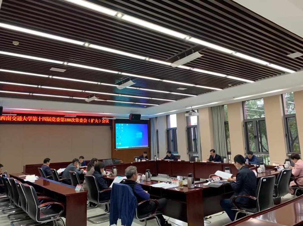 10月19日,学校党委在犀浦校区召开第十四届第180次常委会(扩大)会议,传达学习习近平总书记最新重要讲话精神,贯彻教育部党组党史学习教育指导组来校指导工作要求,研究统一战线工作、“双一流”建设方案、学院调整、辅导员队伍建设、“双代会”等重要工作。校党委书记王顺洪主持会议。