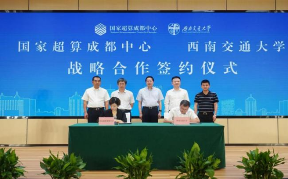 6月23日,由学校党委常委、副校长沈火明、康国政带队,学院党委书记栗民、执行院长李翔宇、党委副书记孔祥彬、专项工作助理张旭,前往国家超算成都中心(以下简称:成都超算中心)签订战略合作协议。成都市科技局副局长陈钢,成都产业集团副总经理李朝林,成都市大数据集团总经理、超算运营公司董事长顾勤等出席了签约活动。