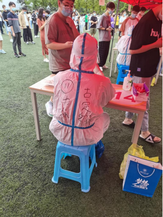古定翱老师感触:我本身是学院本研联合党支部的一名学生党员,又是学院的免研辅导员老师,而且大部分的教师党员年龄都比我大,我作为一名00后,更应该在这个时候发挥一下党员的先锋模范作用,所以我就报名参加了。在做志愿者时,虽然很苦很累,但是能看出做核酸的学生们精神状态都很好,排队也井然有序,扫完码后也会说谢谢,这也会让我们志愿者感受到自己的付出是值得的。我相信在大家的共同努力下,我们能够早日战胜疫情。